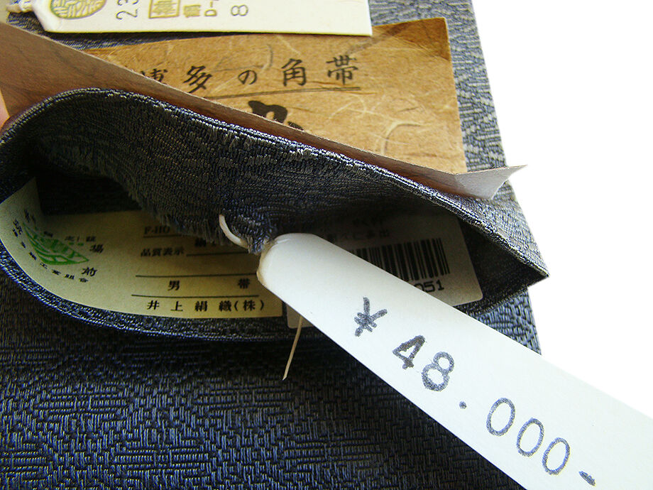 きものしらゆり 男性用 珍色 本場筑前博多織 藍鼠色 角帯 正絹 市場販売価格¥48,000 S725 收藏
