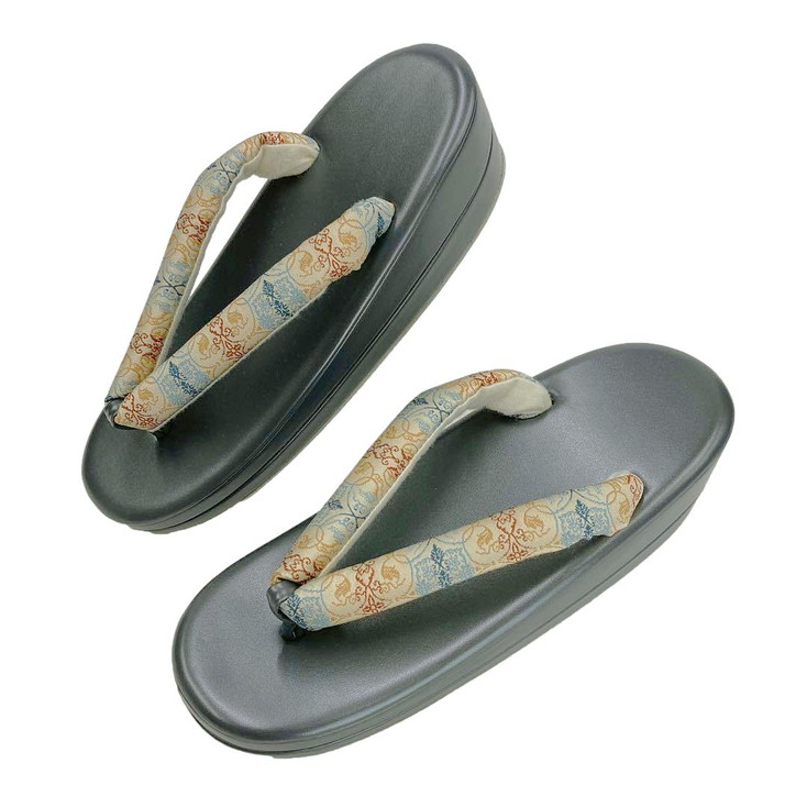 鼻緒は、龍村美術織物・絹100% 龍村美術織物(たつむらびじゅつおりもの)とは、京都に本拠を置く高級美術織物の老舗メーカーであり、1894年創業の伝統と革新を兼ね備えた織物ブランドです。 正倉院裂など古代織物の忠実な復元と、絵画や工芸品をモチーフにした独創的な織物制作を両立、龍村美術織物は、伝統工芸の枠を超えた「織物芸術」として、日本文化の美を世界に発信し続けています。 龍村美術織物を鼻緒にし高級草履二枚芯で礼装にもお使いいただける本草履です。 ・草履長さ、約 23.5cm ・最大幅(台)、約 8.6cm ・ヒール高さ、約 6.0cm 鼻緒・絹100% ・台側・PVC合皮 台はこの色が一番近い雰囲気です。 鈍色 にびいろ#727171 |