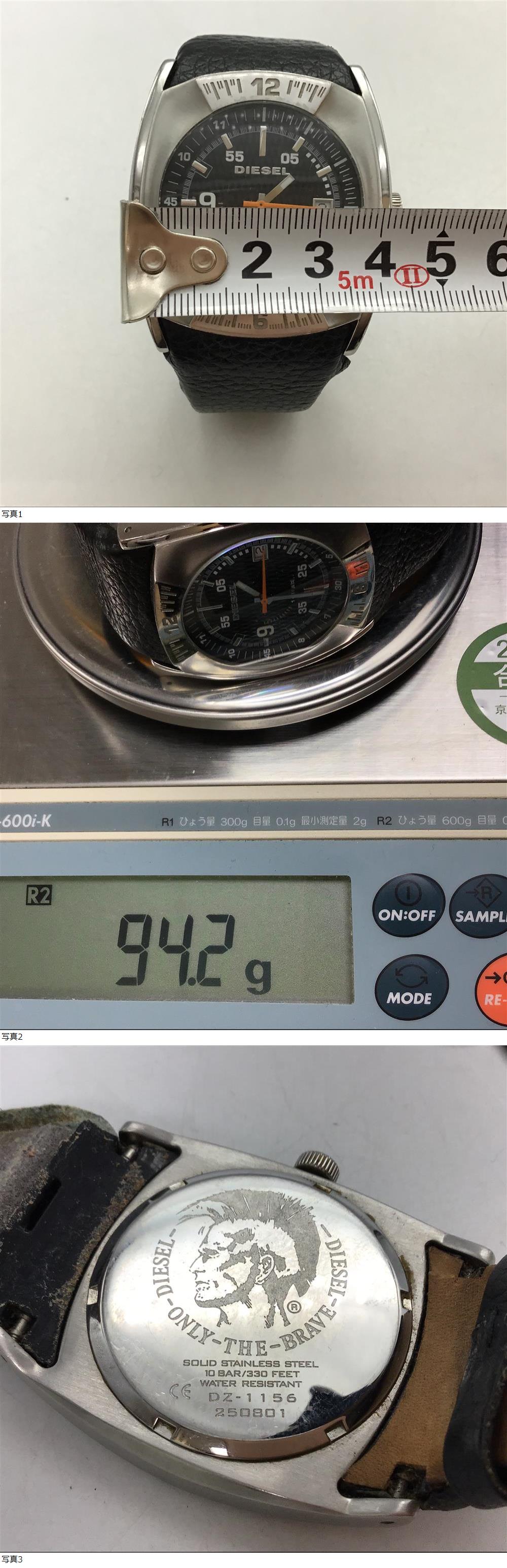 0245■ DIESEL ディーゼル ウォッチ ビッグフェイス DZ-1156 黒文字盤 100m防水 100BAR 不動 リューズ○ 收藏