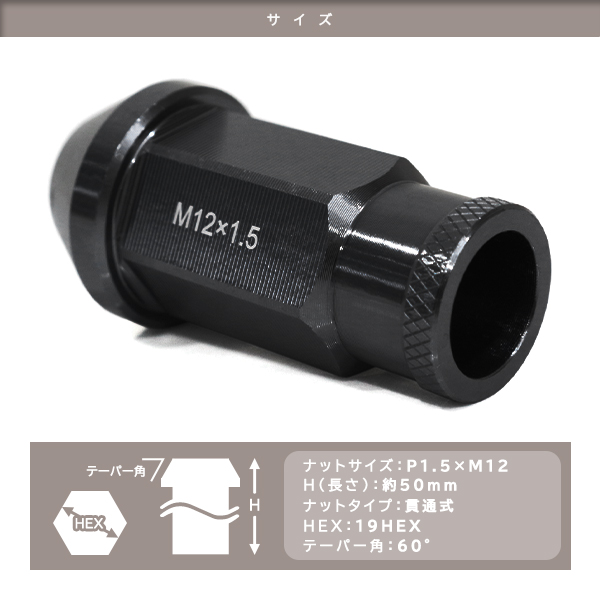 ю 【メール便】 アルミ ホイールナット M12×P1.5 19HEX 50mm [ 貫通Cタイプ ] 1個 〔 ブラック 〕 トヨタ/ホンダ/三菱/マツダ/ダイハツ 收藏