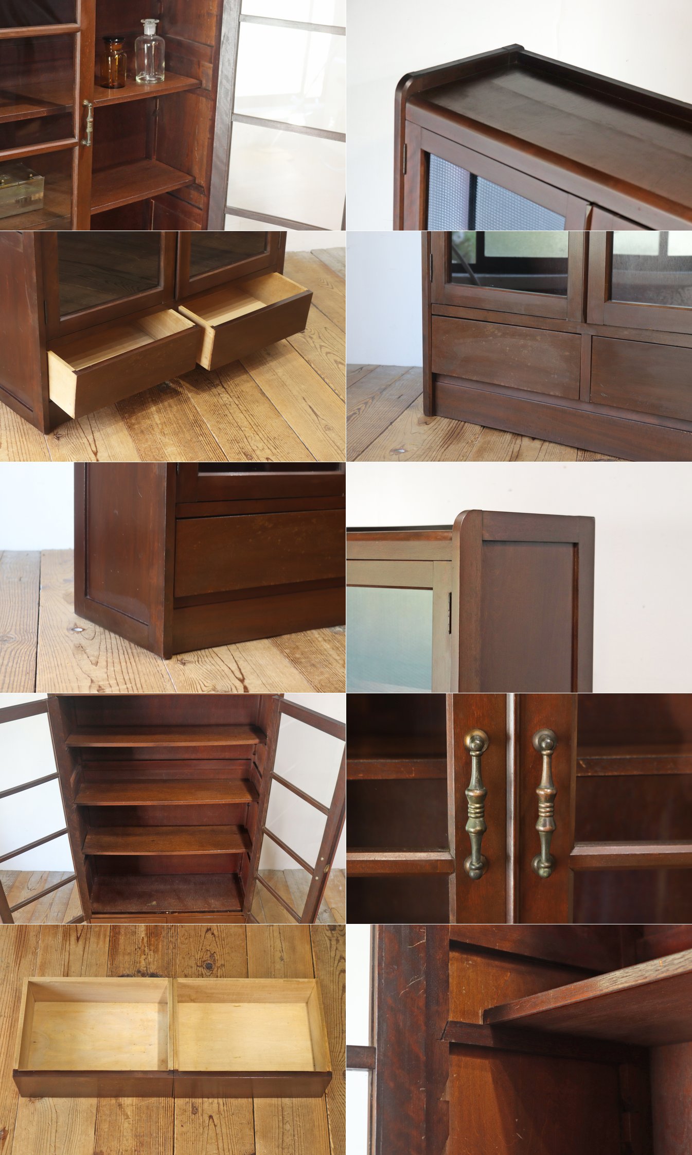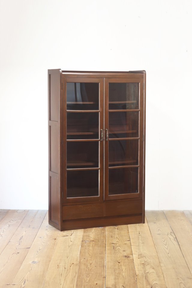 レトロ ガラスキャビネット 本箱 収納 食器棚 ラック 引き出し 抽斗 2杯 木製 ヴィンテージ/アンティーク英国/PIT16117 收藏