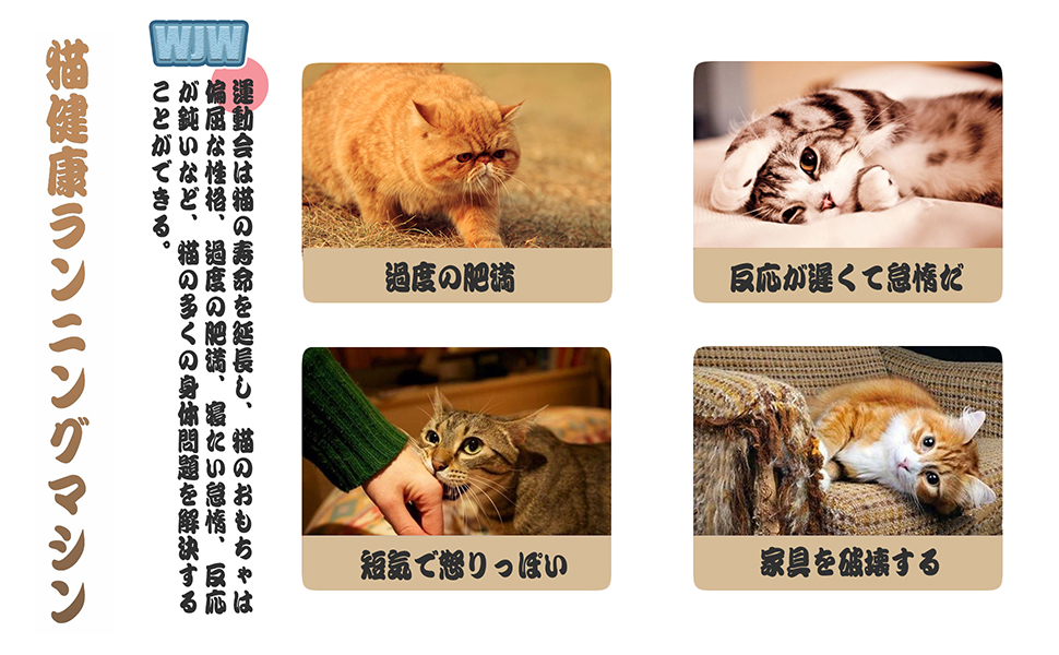 ??【猫健康ランニングマシン】ほとんどの長時間室内飼いの猫は運動不足のため、肥満や病気のリスクが高くなってしまいます。の室内用猫用トレッドミルは、愛猫の肥満や病気のリスクを減らし、体重をコントロールし、活発で健康的な生活を送るための素晴らしいソリューションを提供します。 | メーカー | WJW |
