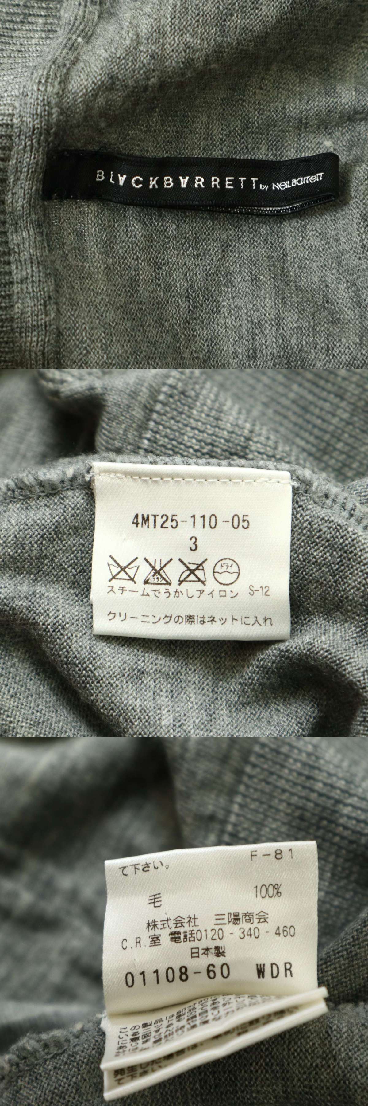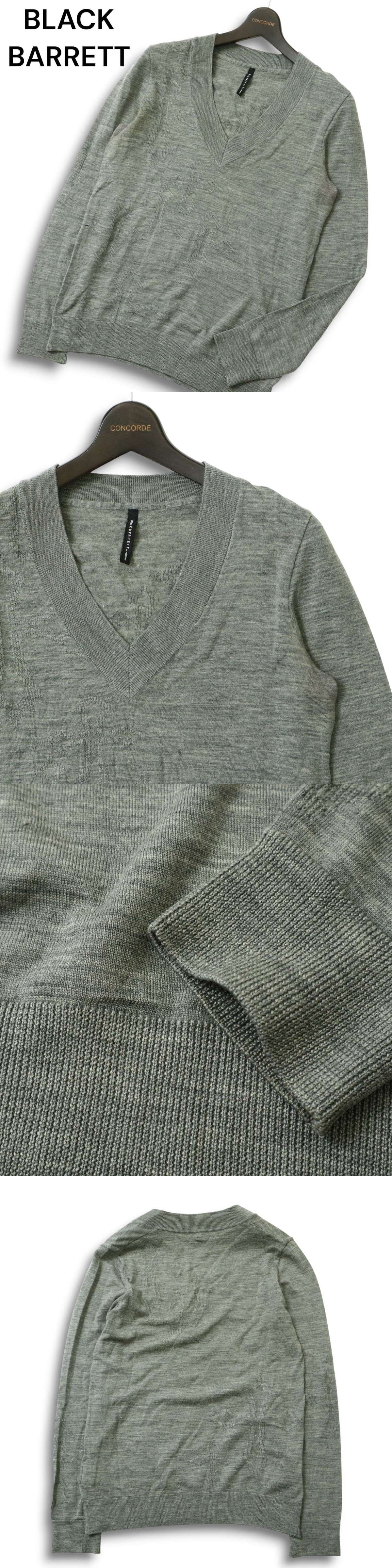 BLACK BARRETT ブラックバレット ニールバレット 秋冬 ウール100%★ 深Vネック セーター ニット Sz.3 メンズ グレー 收藏