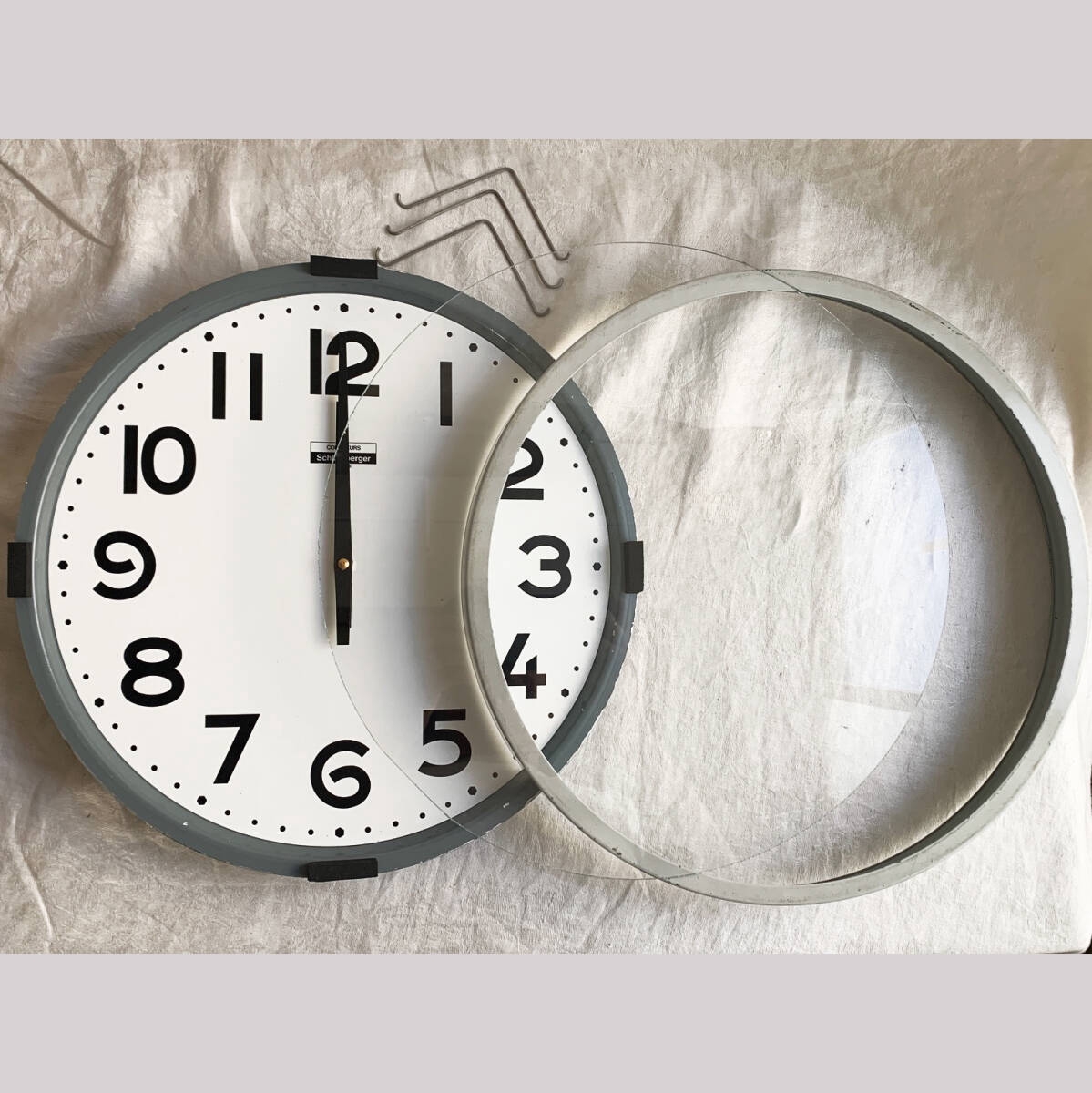 特大 フランス 70s SCHLUMBERGER φ36cm インダストリアル 時計 壁掛け ウォール クロック 陶器 アンティーク ヴィンテージ ドイツ 收藏