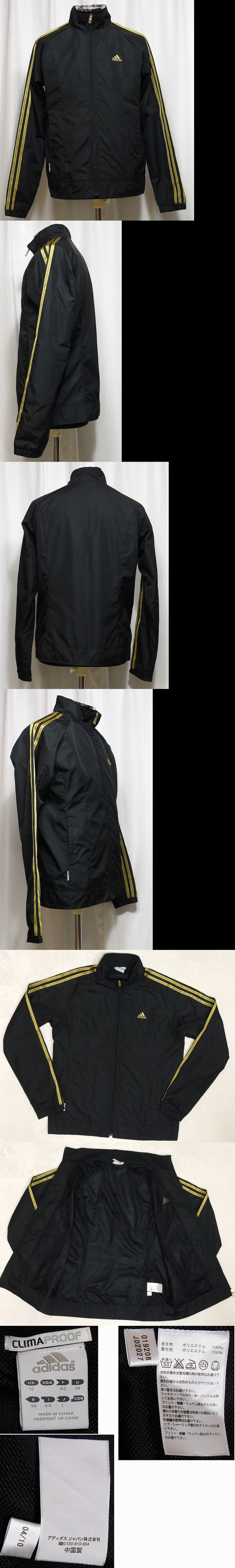 ☆概ね美品 アディダス adidas ClimaProof ウィンドブレーカー ウインドジャケット 裏地メッシュ 春秋 メンズL 黒にゴールド JD2027 收藏