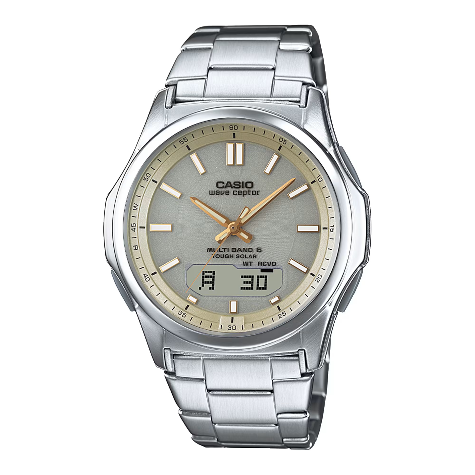 国内正規品 CASIO カシオ ウェーブセプター 電波ソーラー メタルバンド WVA-M630D-9AJF ベージュ×シルバー メンズ 收藏