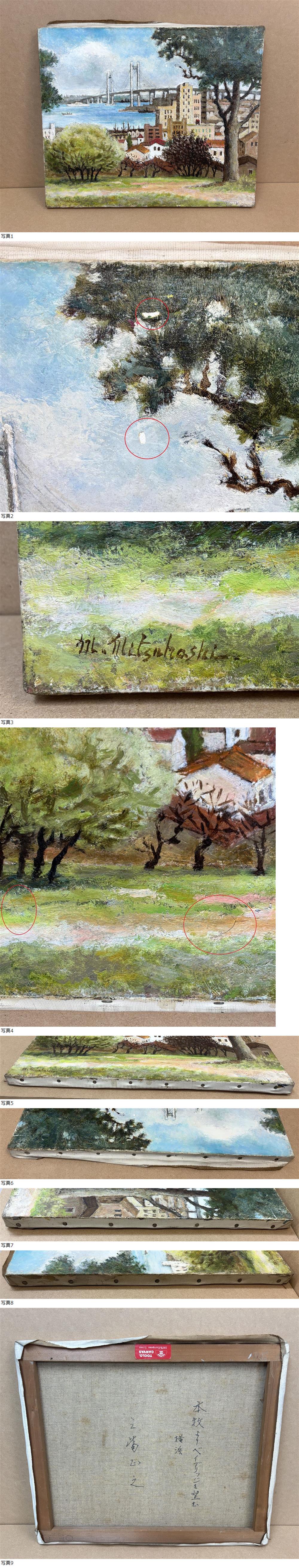 | 真作M1544/三觜正之 本牧よりベイブリッジを望む 横浜 F8号/みつはしまさゆき キャンバス 油彩画 洋画 風景画 元一創会員 元二紀同人 |