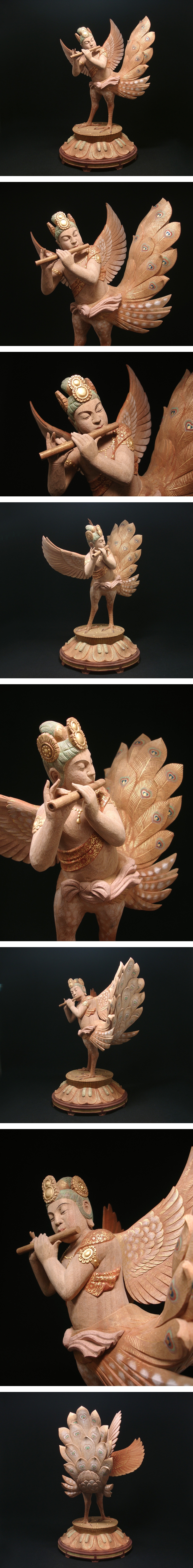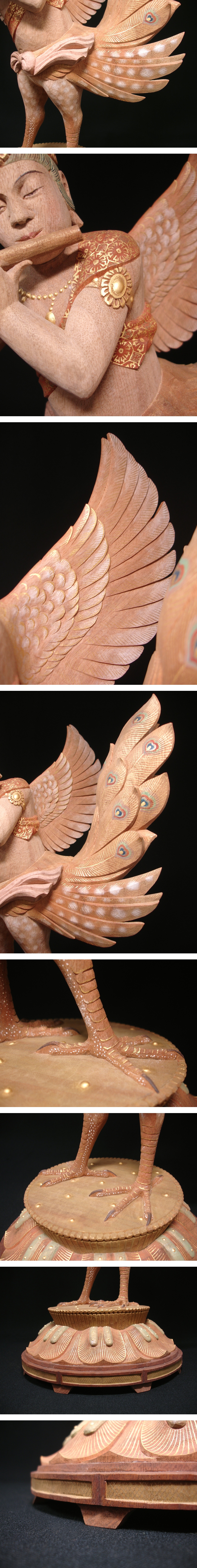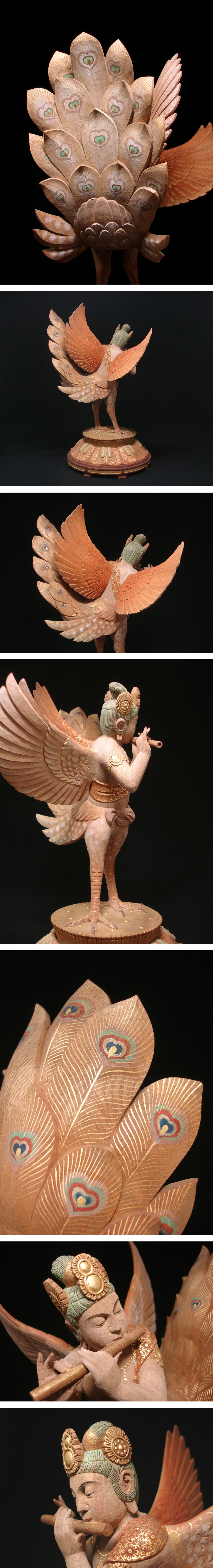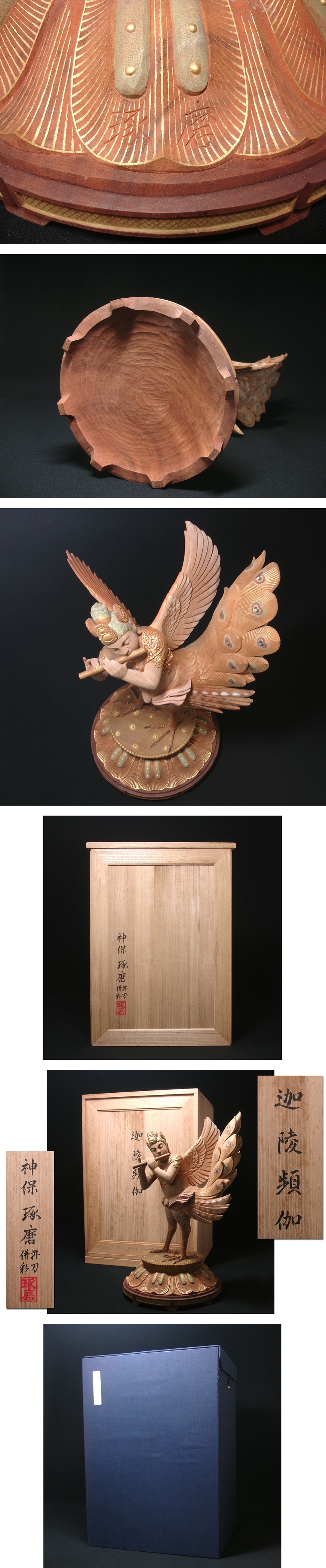 慶應◆写実木彫の第一人者【神保琢磨】秀逸作 木彫彩色『迦陵頻伽』共箱・タトウ付 仏教美術 收藏