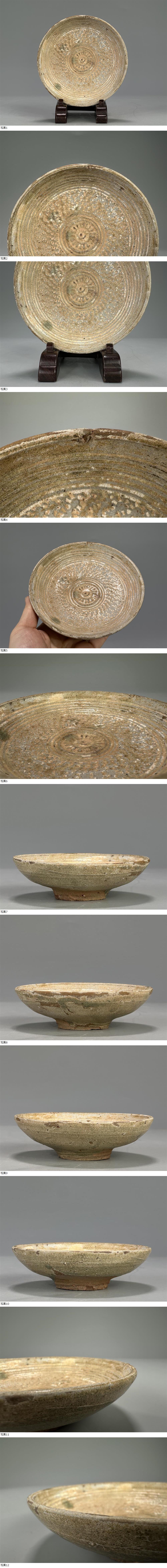 UD16-9 朝鮮古美術 14~15世紀 高麗末〜朝鮮初期 灰緑釉 刻文盤 朝鮮古陶 李朝茶道具 韓国美術 收藏