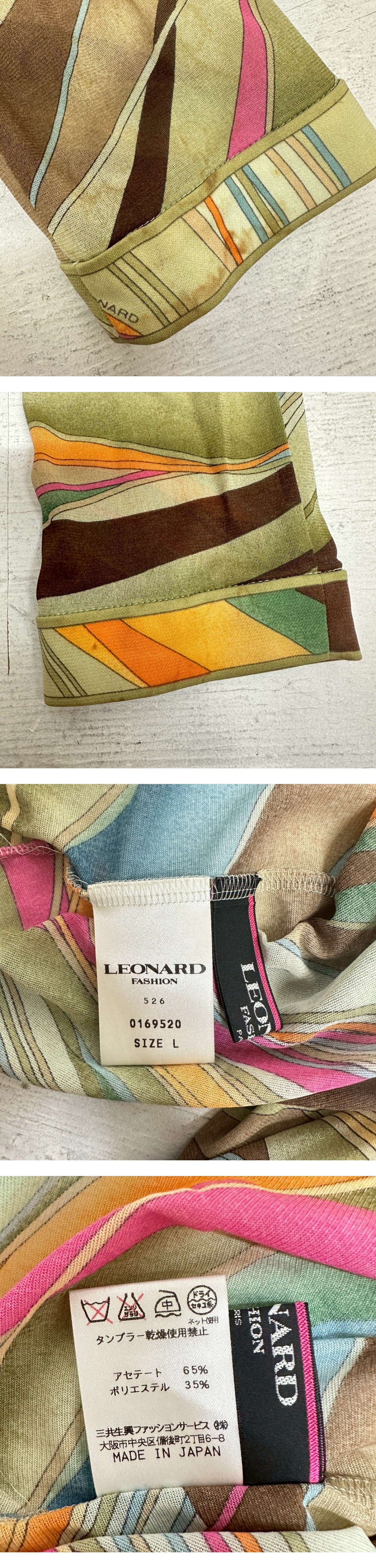 【LEONARD レオナール】マルチカラー 波模様 長袖シャツ 薄手 トップス カットソー レディース 女性服 Lサイズ 日本製 USED 收藏