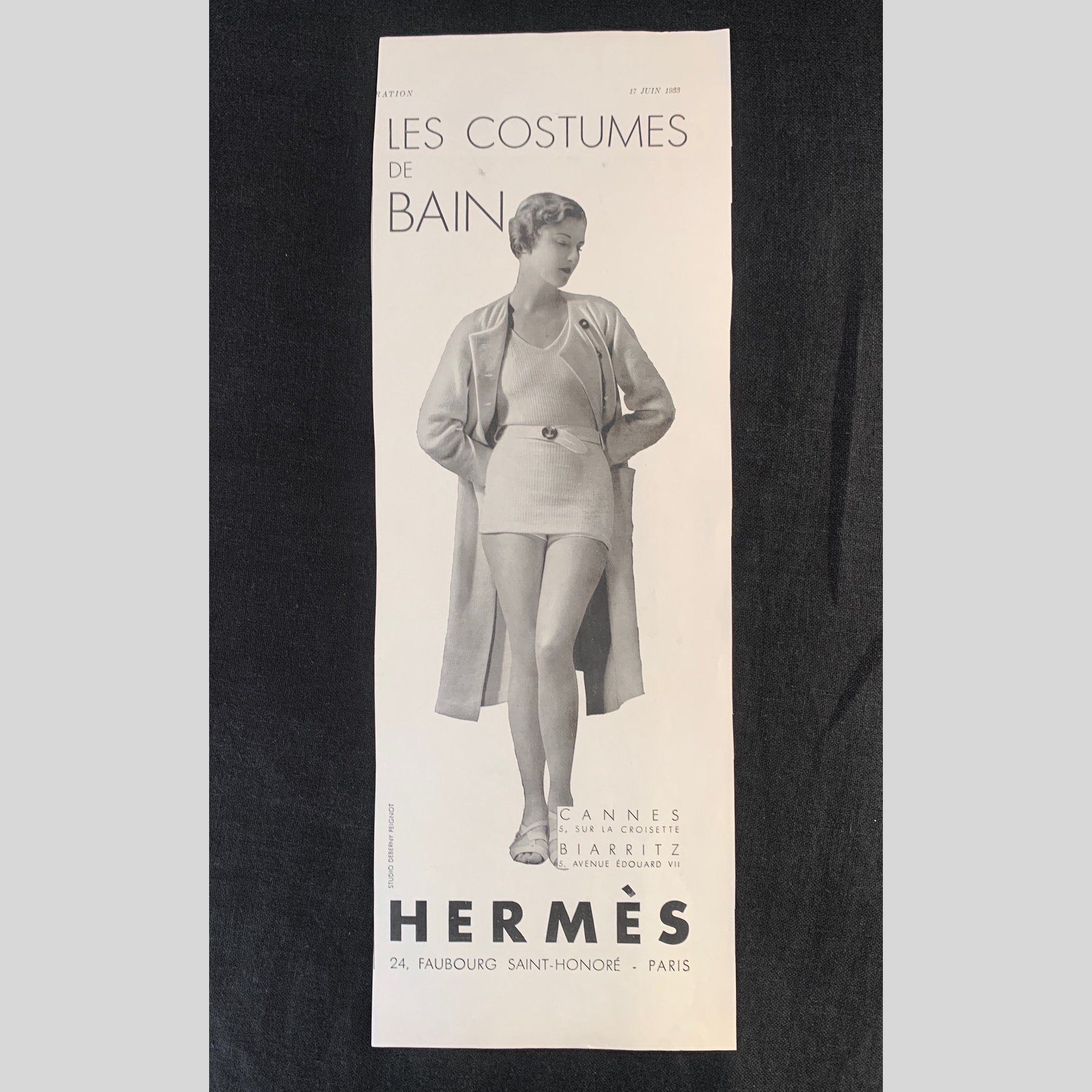 フランス 1933年 HERMES エルメス 水着 ファッション スイムウェアー 旅行 バッグ 鞄 ポスター デザイン 雑誌 広告 アンティーク 收藏