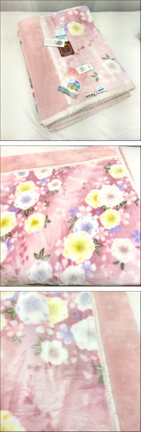 日本製 新品 衿3層本体2層構造ボリューム温泉毛布 遠赤外線効果 シングル 花柄 ピンク 收藏