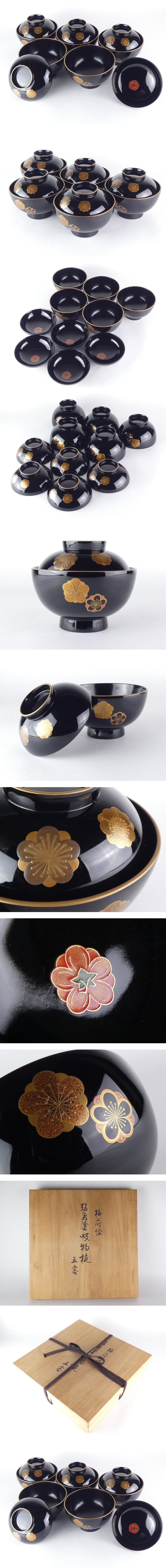【都屋】梅蒔絵 輪島塗 吸物椀 5客 煮物椀 R463 B-2 收藏
