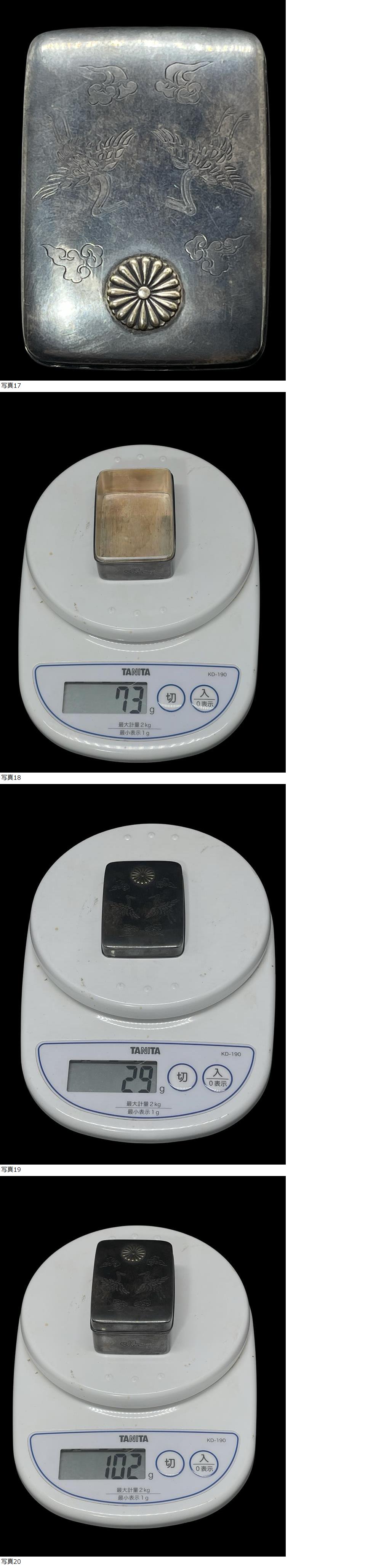 純銀製 ボンボニエール 皇室御下賜品 十六葉八重表菊花紋 サムライ純銀製 102g 箱形菓子器 蓋物 小箱 昭和天皇立太子礼記念 收藏