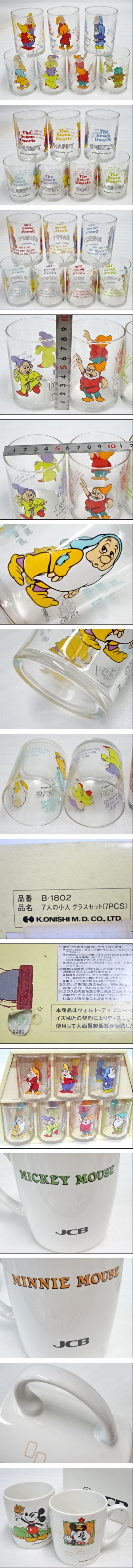 8371Wait Disneyウォルトディズニー白雪姫 七人のこびと グラスセット レトロ JCBミッキー&ミニー マグカップセット ノベルティ コレクター 收藏