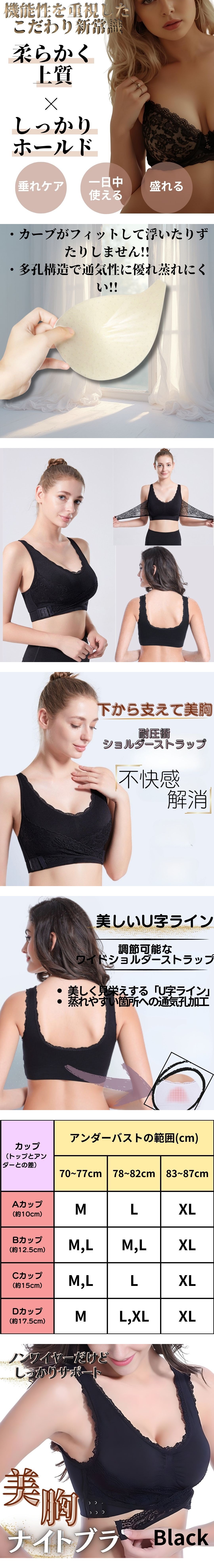 Mサイズ 2セット シームレスナイトブラ 育乳 美乳 サイズ展開 黒 ブラック ノンワイヤー バストメイク ナチュラルアップ パット取外 横流れ 收藏