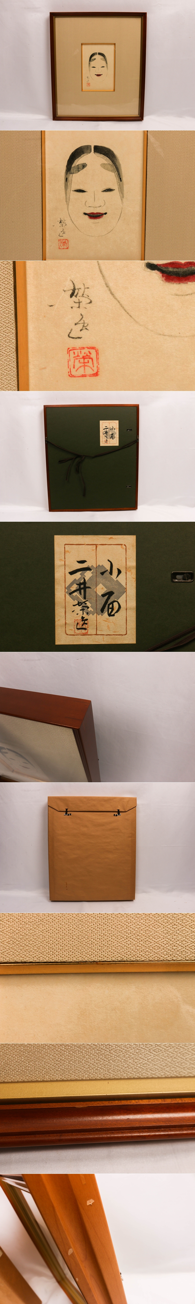 【SAG】二井栄逸 『小面』日本画 紙本 肉筆 直筆サイン 落款 額装 共シール タトウ箱 本物保証 收藏