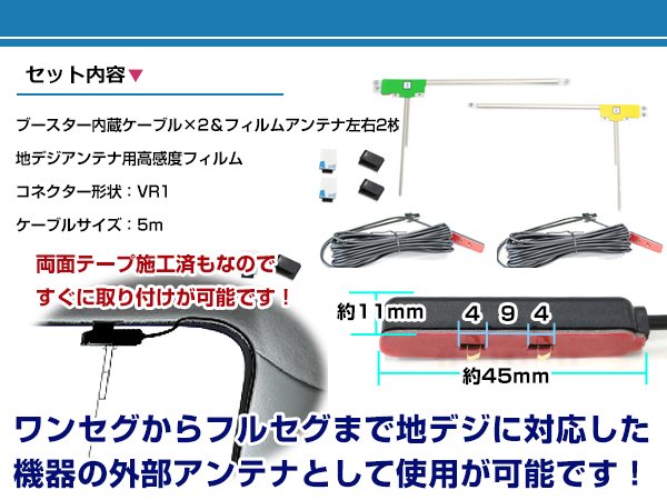 メール便送料無料 高感度フィルムアンテナ左右付き◎ブースター内蔵コード2本 トヨタ / ダイハツ NSZT-Y66T 2016年モデル 左右L型 VR1 ナビ 收藏