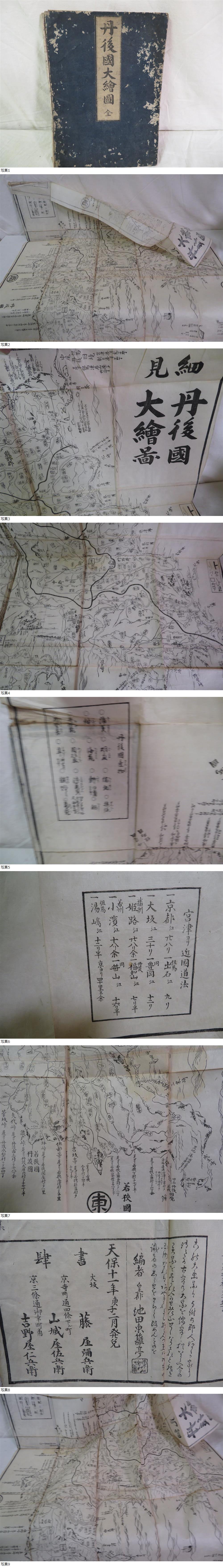 天保11年 丹後国大絵図 古地図 極大図 池田東籬亭編 山城屋佐兵衛 和本 木版 古文書 折り畳み式 縦約113.7cm×横約91.5cm 收藏