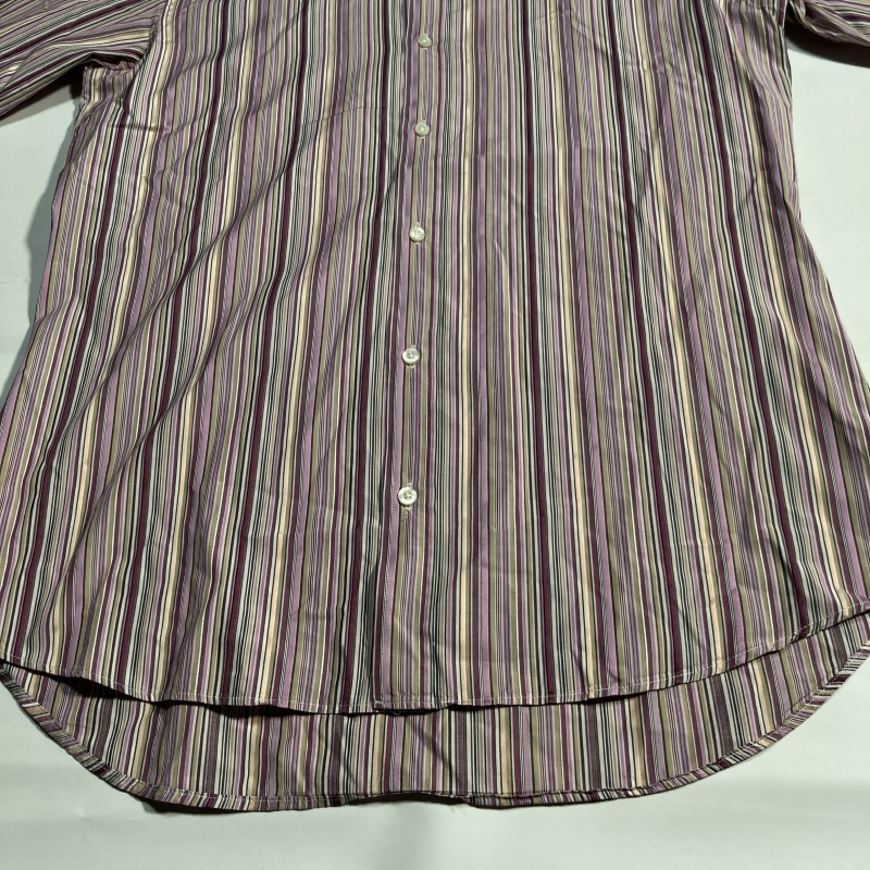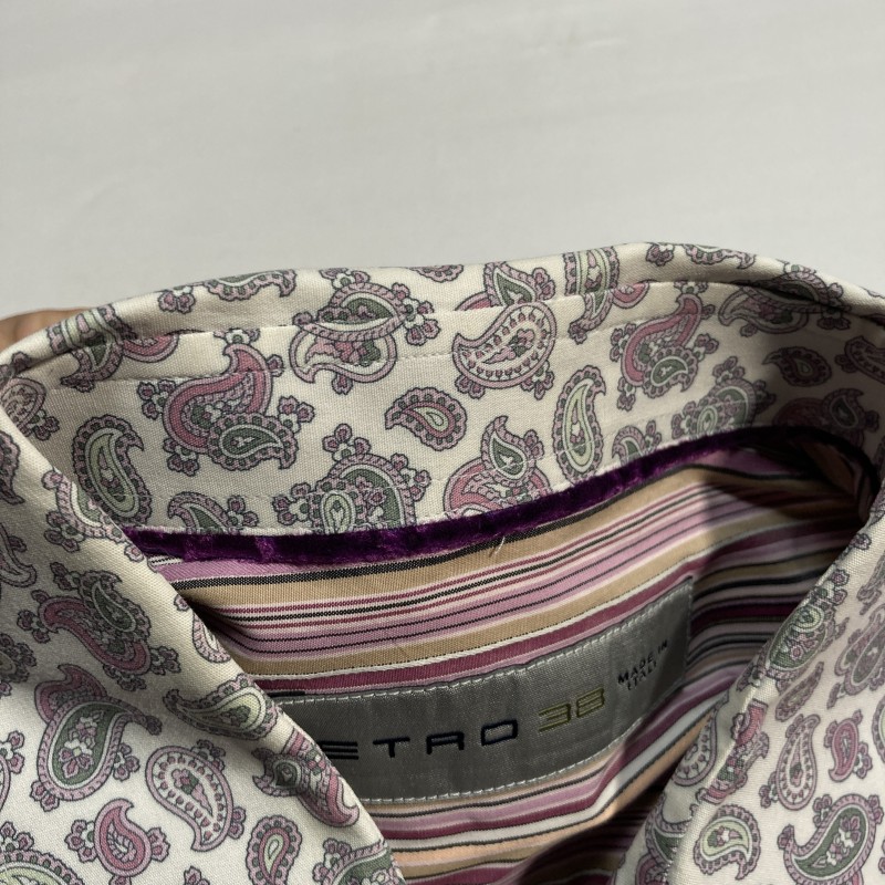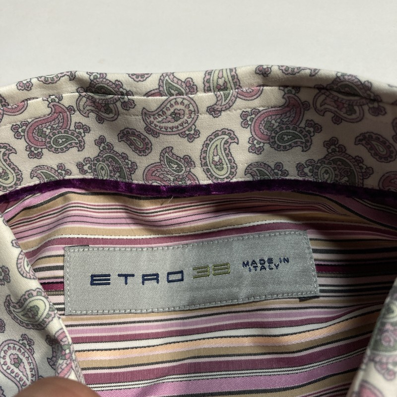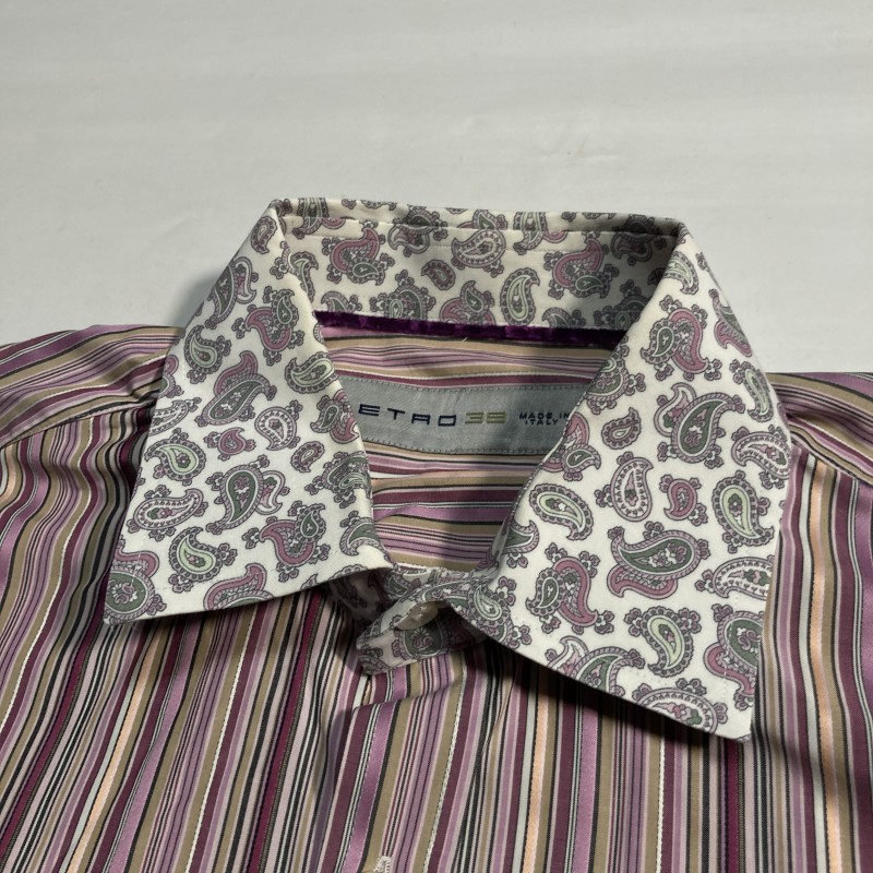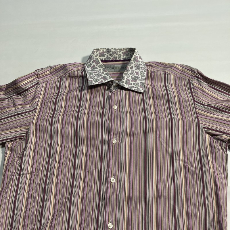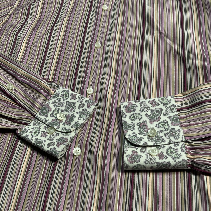 ETRO★MADE IN ITALY★archive★激レア★イタリア製★マルチ ストライプ×ペイズリー切替 長袖ドレスシャツ クレリックシャツ 紫 38 エトロ 收藏