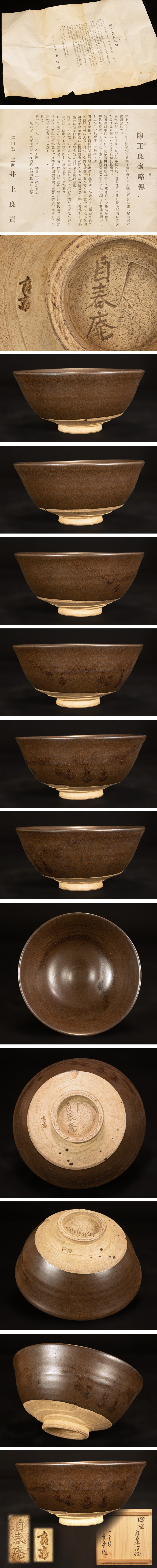 ●贈呈箱書 井上良斎 作 真葛焼 鉄砂釉 茶碗/自春庵宗恒書付・自春庵印 共箱 茶道具● 收藏