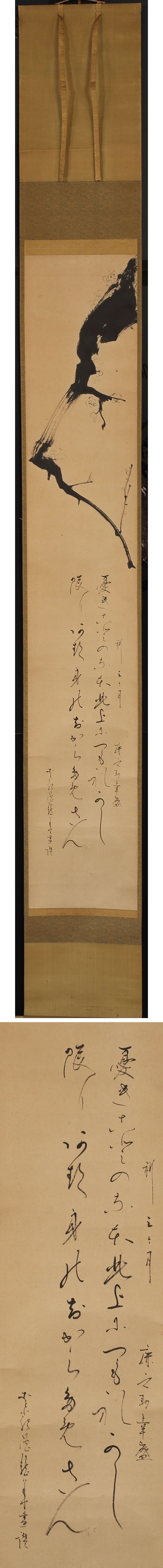 【模写】委託HK◇時代 水墨梅画賛竪物(掛軸 掛物 茶掛 日本画 水墨画 墨梅図 初春 冬 梅 白梅 炉 茶事 茶席 茶の湯 床の間 待合 本席 ) 收藏
