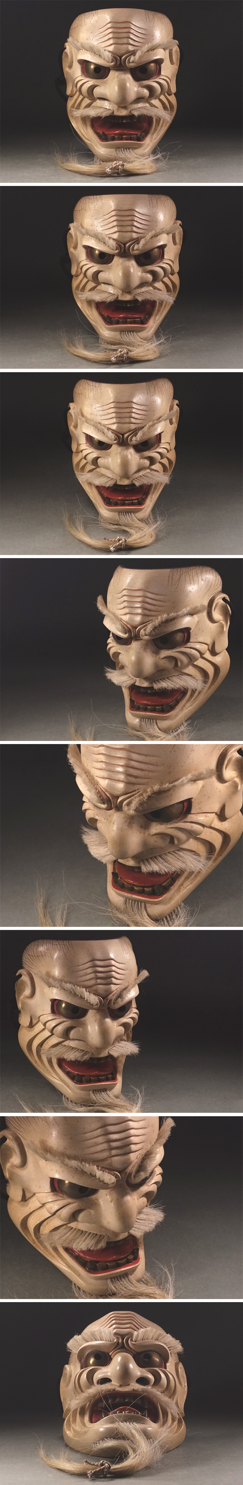 ∇花∇面打師作 木彫彩色能面「悪尉」 猛々しい老鬼神の面 瞳・牙は金銅板張 迫力に満ちた尉面 收藏