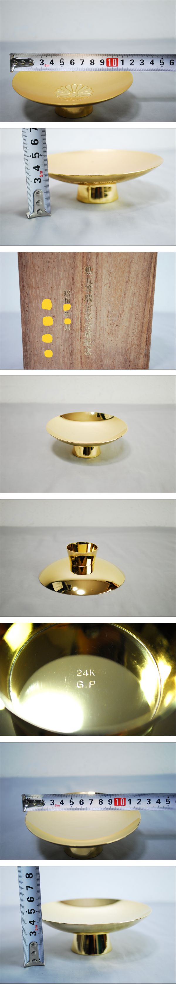 | 商品:24KGP 金杯 3個セット サイズ: 画像をご参考下さい。 重量: 1枚目画像左から 約184g約177g約156g 家庭用はかりですので誤差はあります。 ※8枚目画像に小さい点が見られます。その他、目立つ傷等は無いように思います。 年月日や氏名などを一部黄色に画像処理しています。 画像のものだけです。 「ノークレーム・ノーリターン」を納得された上でのご入札をお願いいたします。 送料は下記に送料表がございますのでご参考下さい。 ※長期保管、経年劣化がある場合もありますので、よく画像にてご判断お願い致します。ご理解いただける方のみ入札お願い致します。 | ||