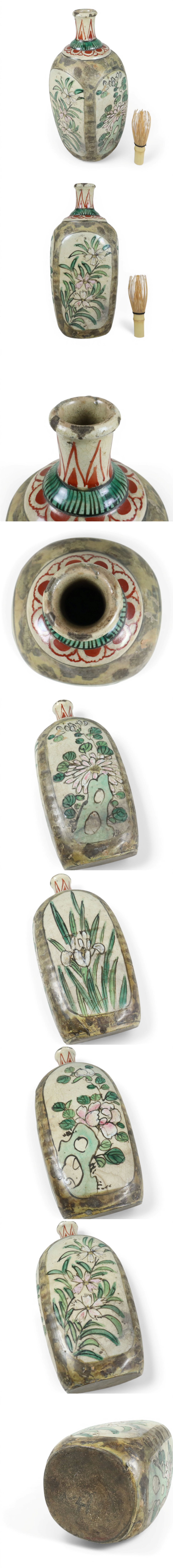江戸後期 岩谷焼 窓絵花文 保命酒徳利 鞆徳利 備後 鞆の浦 酒器 陶磁器 骨董品 美術品 5479wcyH 收藏