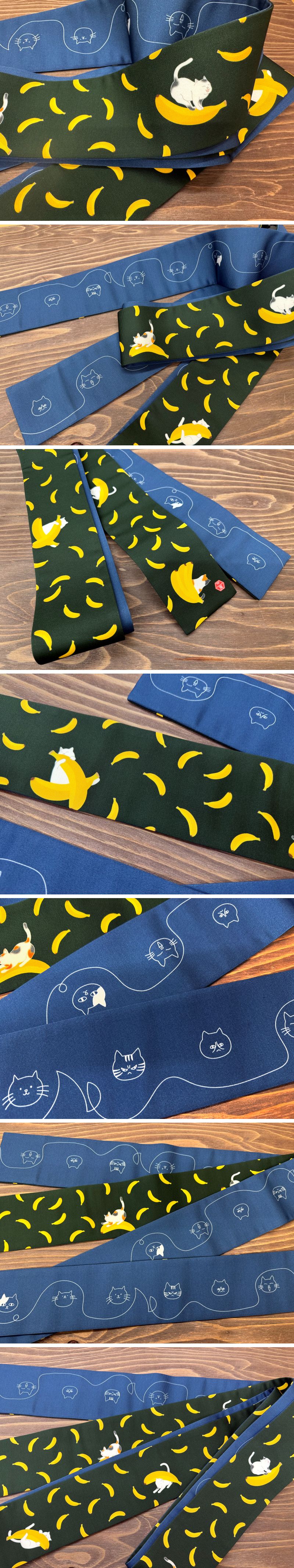 【着物三河】新品・角帯★両面使えるリバーシブル『ねこバナナ』長さはゆとりのロングサイズで約410cm。絞めやすく緩みにくい【日本製】 收藏