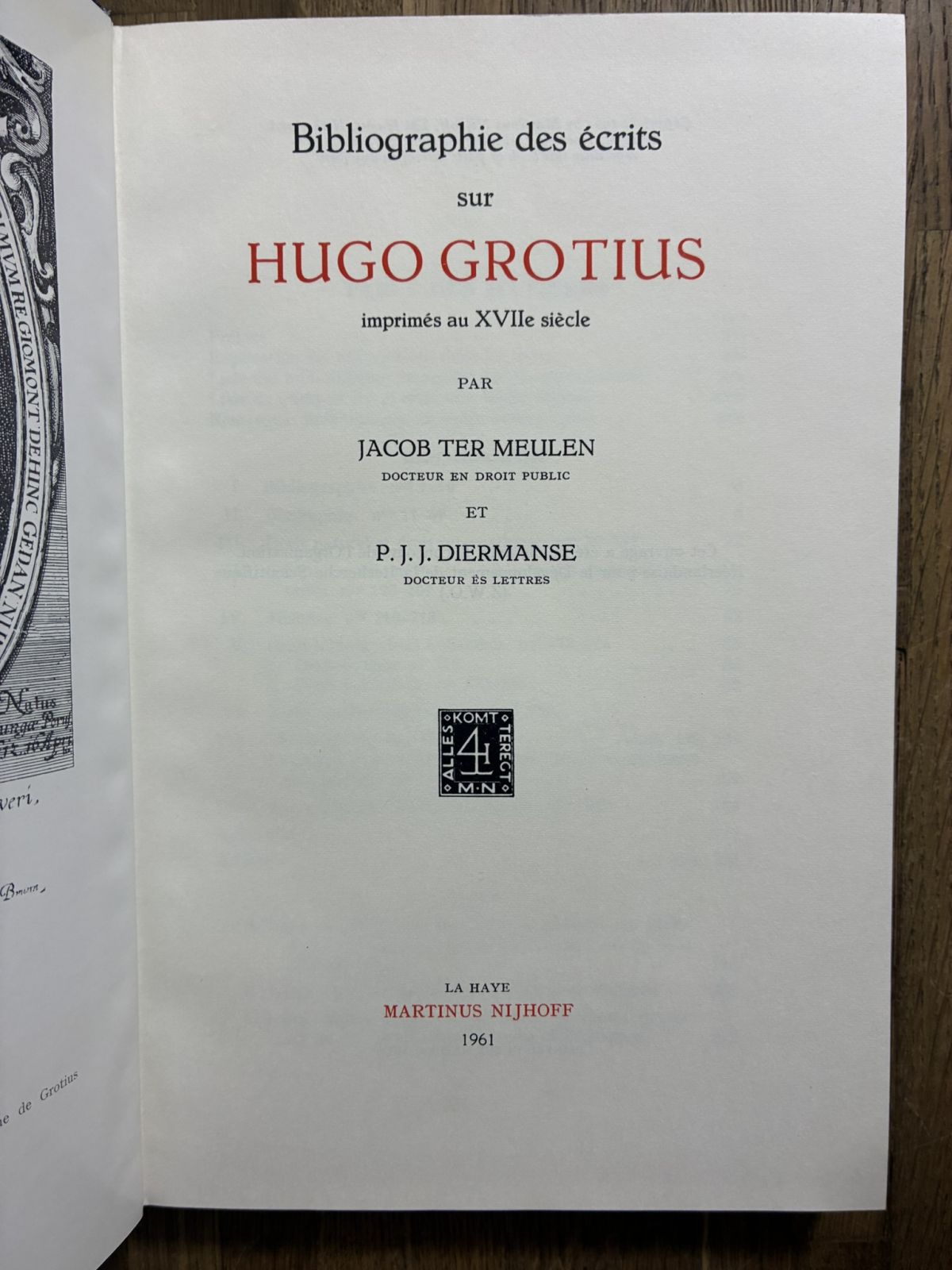 1961年 グロティウス書誌 Ter Meulen Diermanse Hugo Grotius Bibliographie 洋書古書 收藏