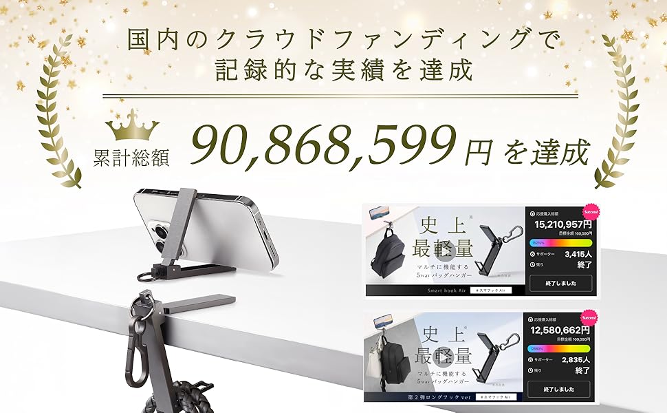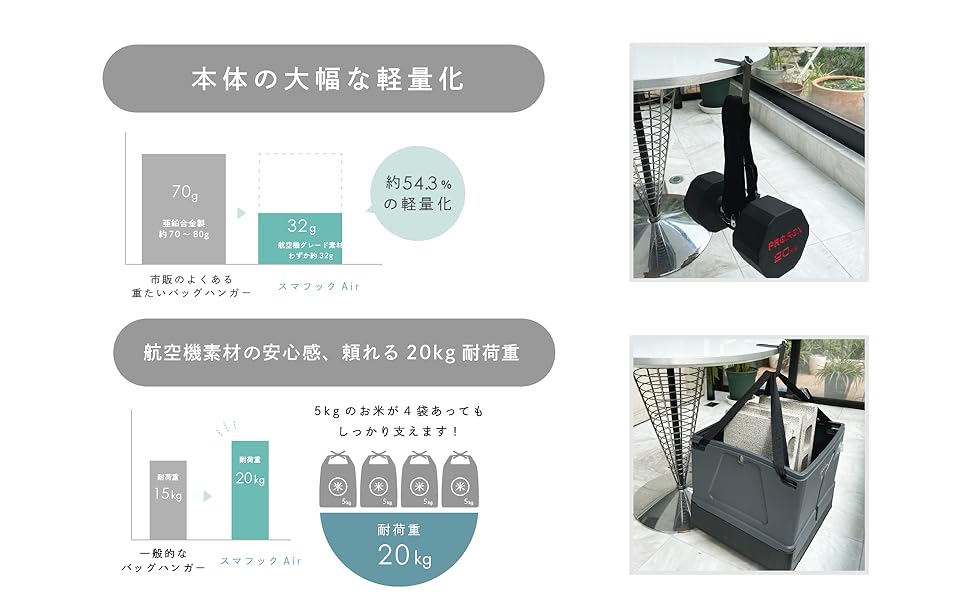 バッグハンガー カバン掛け フック テーブル 対応 持ち運び 超軽量 帽子掛け スマフックAir 航空機素材 超々ジュラルミン採用 收藏