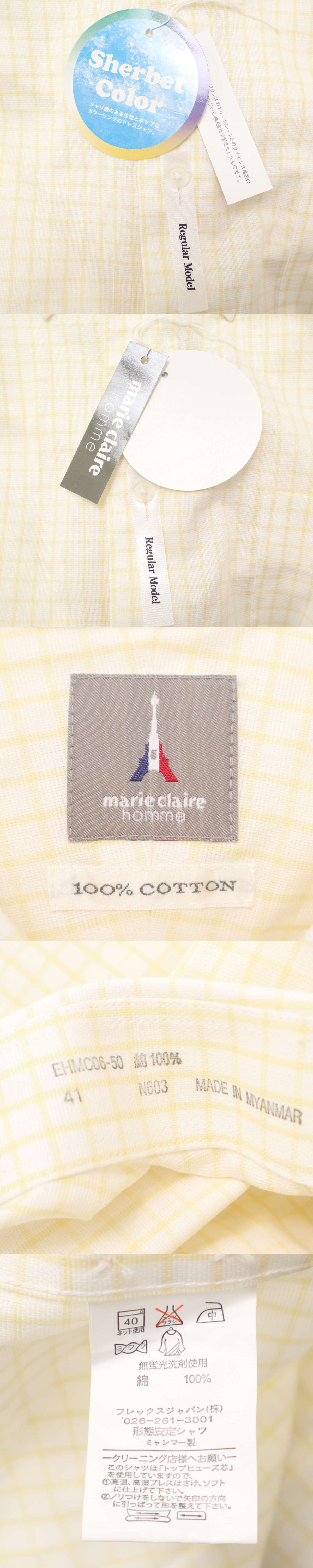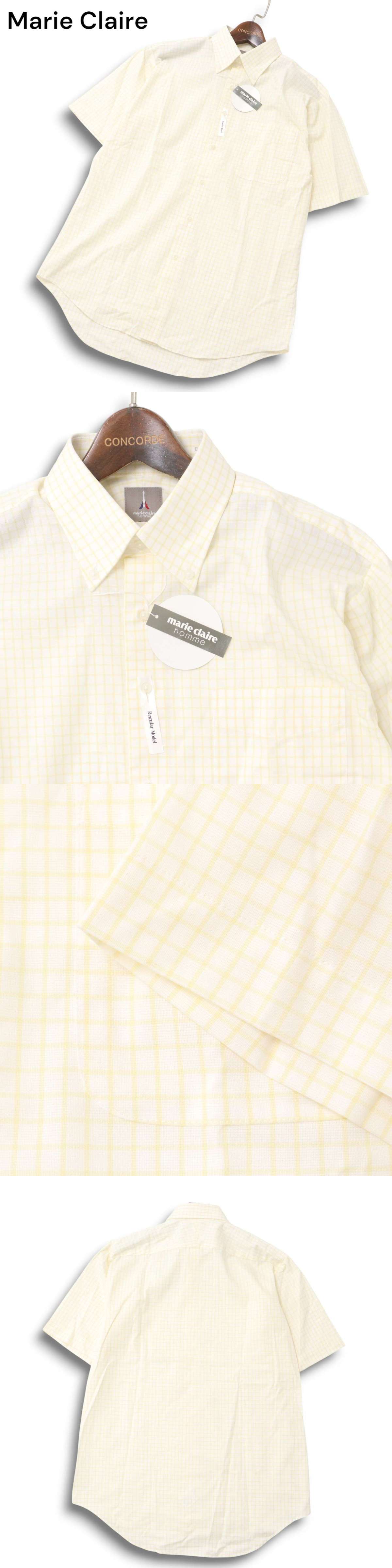 【新品 未使用】 Marie Claire homme マリクレール オム 春夏 形態安定★ 半袖 ボタンダウン チェック シャツ Sz.41 メンズ 收藏