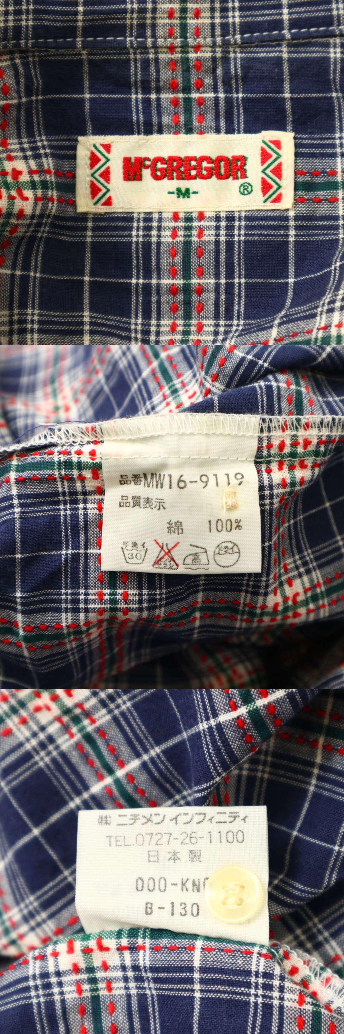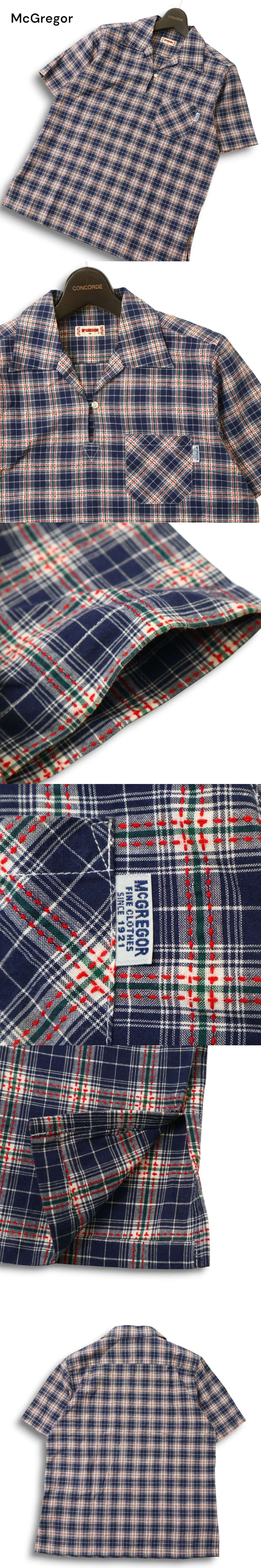 McGregor マクレガー 春夏★ 半袖 チェック プルオーバー 刺し子 カプリ シャツ Sz.M メンズ 刺子 日本製 收藏