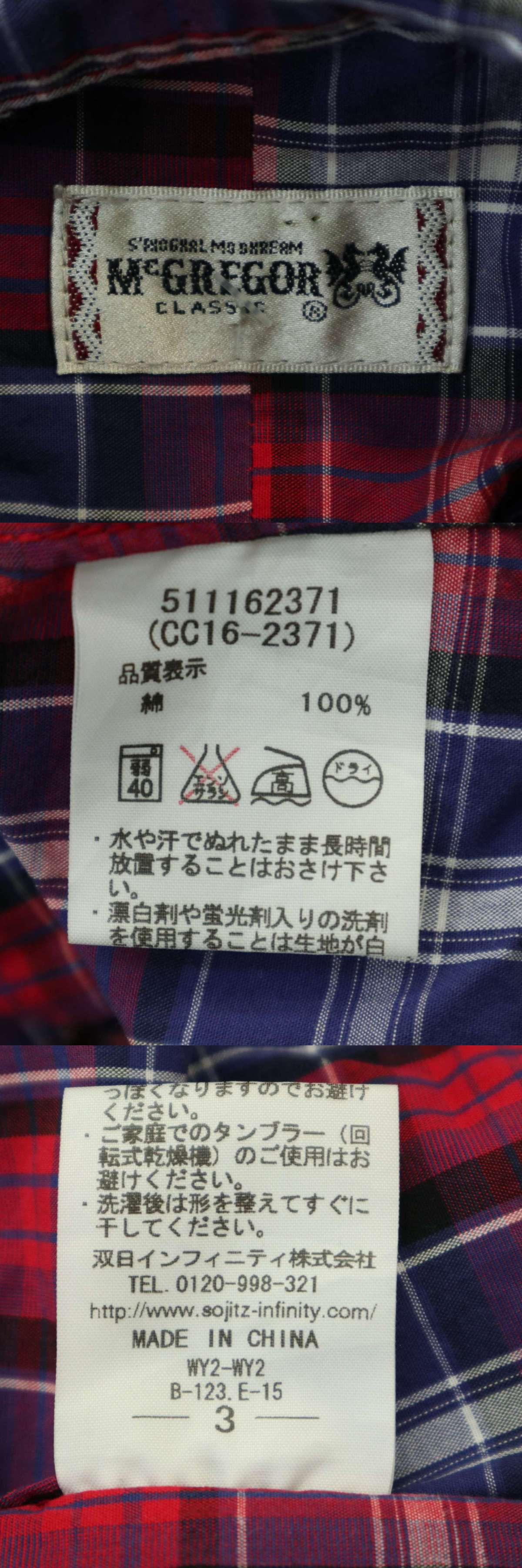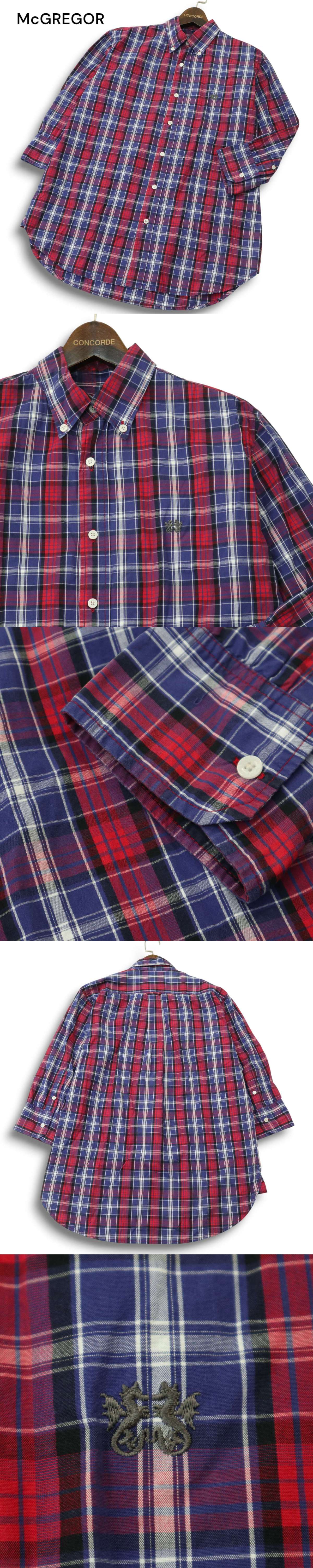 McGREGOR マクレガー 春夏 ロゴ刺繍★ 7分袖 チェック ボタンダウン シャツ Sz.3 メンズ 收藏