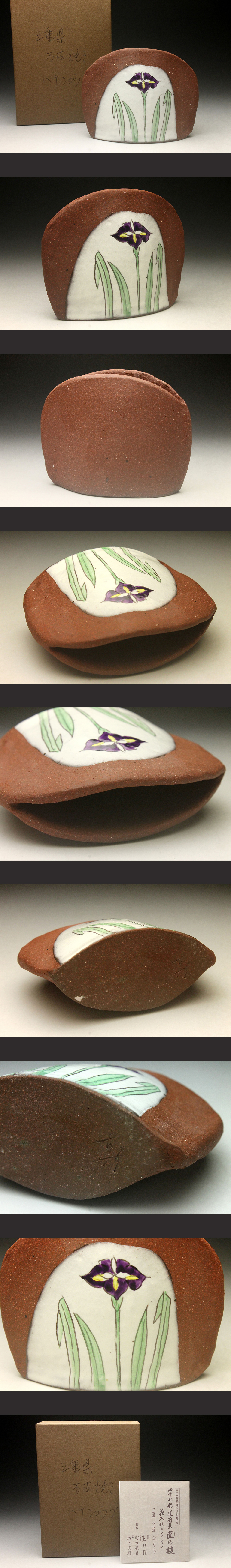 【余韻】 四十七都道府県匠の技 花入れコレクション 三重県 万古焼 ハナショウブ 華道具 化粧箱<同梱可> 收藏