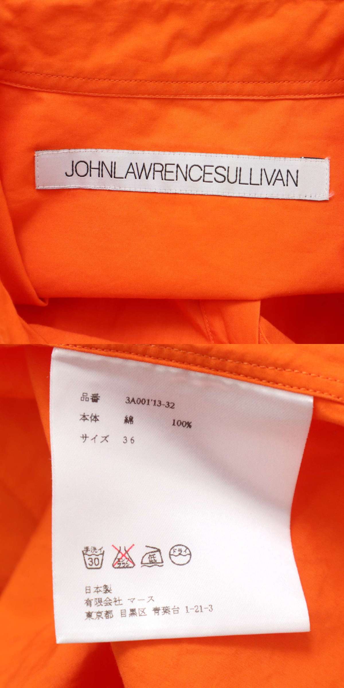 JOHNLAWRENCESULLIVAN ジョンローレンスサリバン 通年★ 長袖 テール ドレス シャツ Sz.36 メンズ オレンジ 日本製 收藏