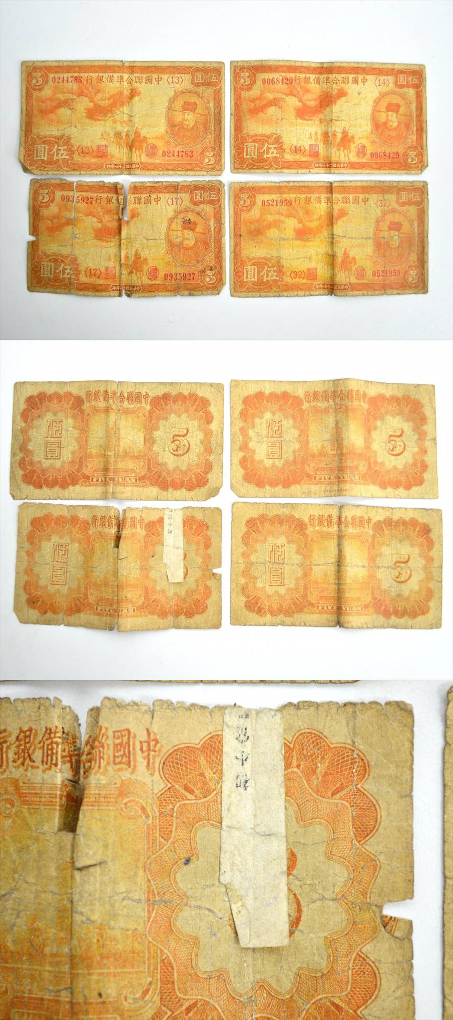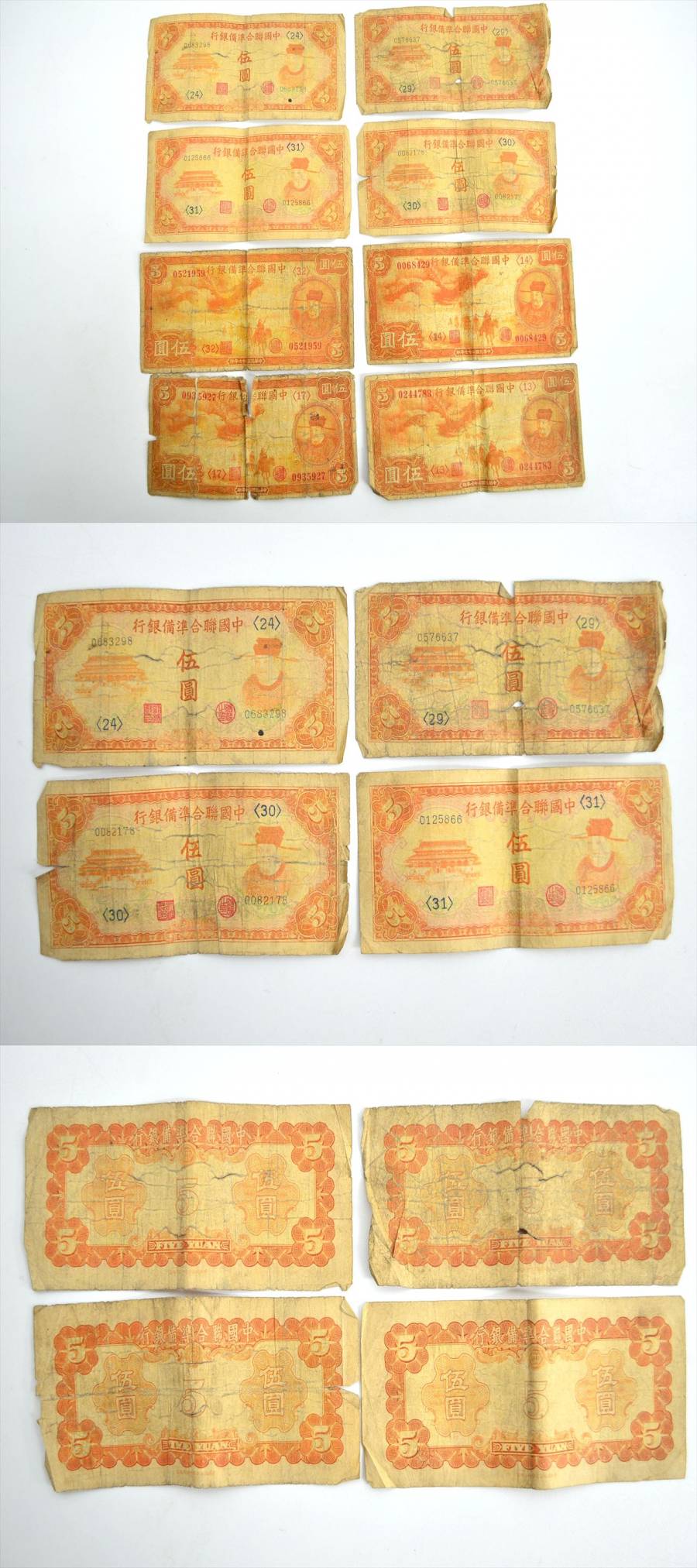 KM719●現状品まとめて●中国連合準備銀行 旧紙幣 古札 伍圓札(5円札) 8枚セット 中国古紙幣 收藏