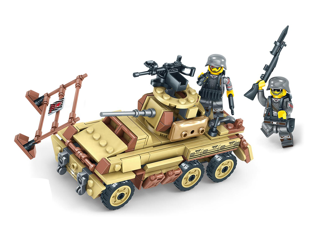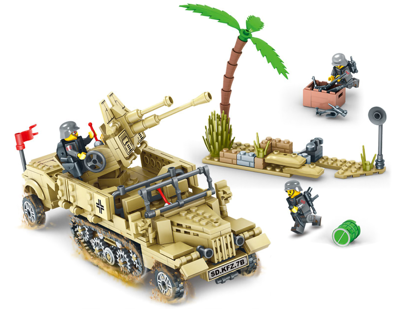 商品説明 ITEM INFO 大西洋沿岸に数百キロに渡って建造された沿岸防衛の要トーチカを再現 AFM ドイツ軍 「大西洋の壁」トーチカジオラマブロックセット 1232Blocksです。楽しく組み立てて、カッコよく飾れるAFM ブロックシリーズです。 WW2中、ドイツ国防軍がフランスからノルウェー沿岸まで延々構築した巨大防衛ラインが 「大西洋の壁(Atlantikwall)」 です。連合軍の上陸作戦に備え、海岸線には分厚い鉄筋コンクリート製 トーチカ(防御掩体) が多数築かれ、機銃座、対戦車砲陣地、観測所、弾薬庫、偽装陣地など多様な設備が組み込まれていました。 そんなトーチカをブロックでリアルに再現!上空の戦闘機や爆撃機を狙い撃つ2cmFLAK38 高射砲や、迫りくる舟艇や歩兵を阻む7.5cm PAK 40 自走砲、弾薬ボックスやバリケードなどがセットになっています。1232個ものブロックで構成されており組応えも抜群です! 楽しく作れてインテリアとしてもグッド!ミリタリーマニアやブロック好きな方に是非! 商品基本情報・スペック ITEM SPEC ●商品名 : AFM ドイツ軍 「大西洋の壁」トーチカジオラマブロックセット 1232Blocks ●商品番号 : M0034S ●ブランド : AFM ●パッケージサイズ : 580mm×400mm×80mm ●完成サイズ(各部最大) : 約247mm×233mm×86mm(トーチカ)、約92mm×91mm×55mm(2cmFLAK38)、約166mm×48mm×37mm(7.5cm PAK40) ●素材 : ABS ●総ブロック数 : 1232 ●対象年齢 : 15歳以上 注意事項 ITEM NOTE ∇商品固有の注意事項 ※小さなブロックが多く含まれています。誤って飲み込まないようにご注意ください。窒息などの危険があります。 ※誤飲の危険がありますので対象年齢を守り、15歳未満のお子様には絶対に遊ばせないでください。 ※当商品はレゴ(LEGO)商品ではございません。 ※弊社取扱商品以外への互換性はありませんのでご了承ください。 ∇ご購入時の留意事項 ※商品はすべて点検してからのお届けになります。商品によってはパッケージの開封等を行う場合もございますことをご了承ください。 ※商品には万全を記しておりますが、万一不備な点がございましたら、お手数ですがお問い合わせフォームにてご連絡頂ますようお願い致します。なお、海外製品につきましては、輸入時についた若干の傷、痛み等が見られる場合がございます。 国内製品のような完全品をお求めの方はご遠慮下さい。 ※商品が適合外であった場合、またはお客様都合による交換・返品・返金は出来ません。よくお確かめの上、ご購入下さい。 ※モニター環境により、実際の商品の色と若干異なる場合がございますのでご了承下さい。 ※他サイトでも同時販売の為売り切れの際はご了承下さい。 ※売り切れの際は早急にご連絡させて頂きます。(当社休業日を除く) 関連商品 RELATED ITEM |