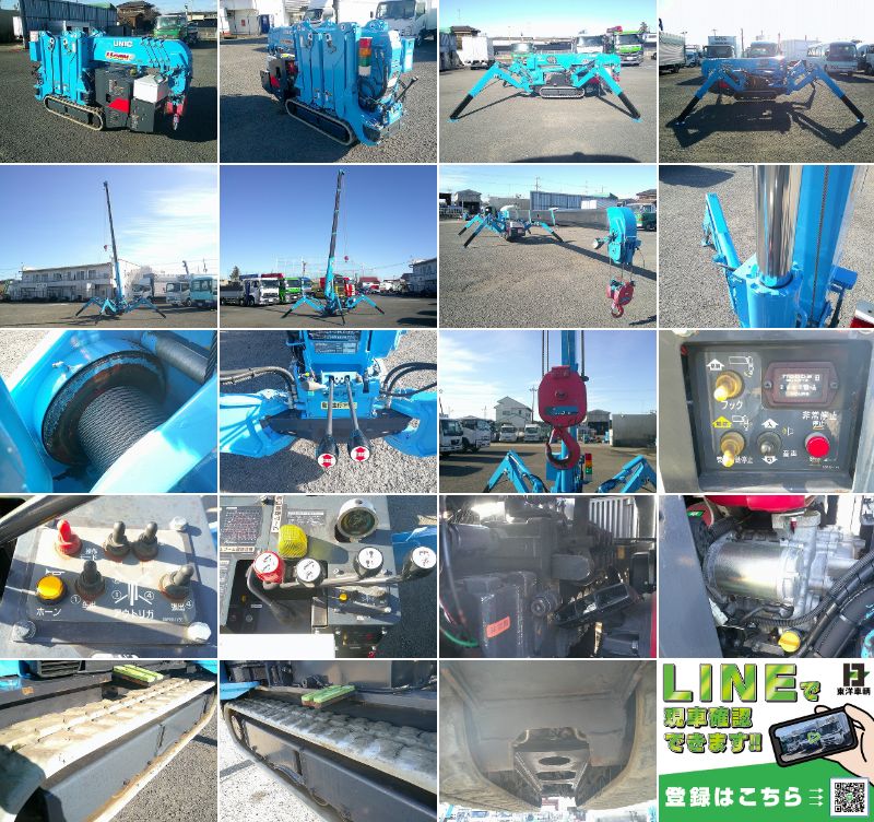 カニクレーン 古河ユニック製 型式:URW295C 5段ブーム ラジコン付(無線) 2.9t吊 電動ユニット付(動作未確認) 最大作業半径8.41m 最大地上揚程:8.8m ゴムキャタ アワーメーター約2465h |