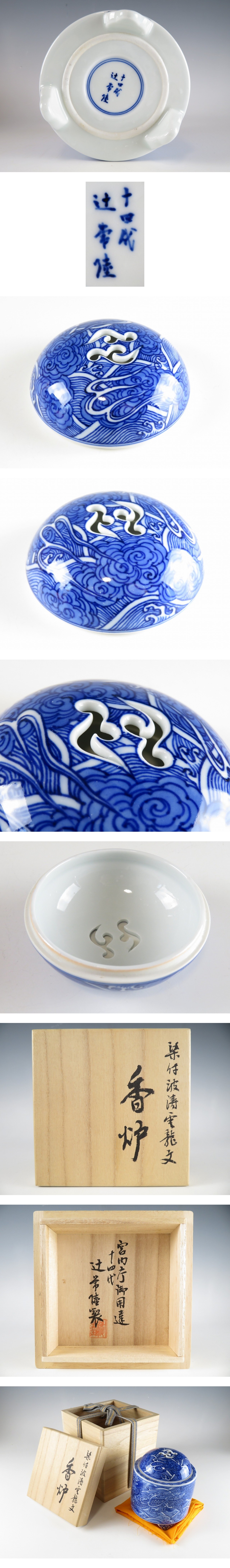 | ☆ 茶道具 十四代 辻 常陸 染付波涛雲龍文 香炉 共箱 になります。 |