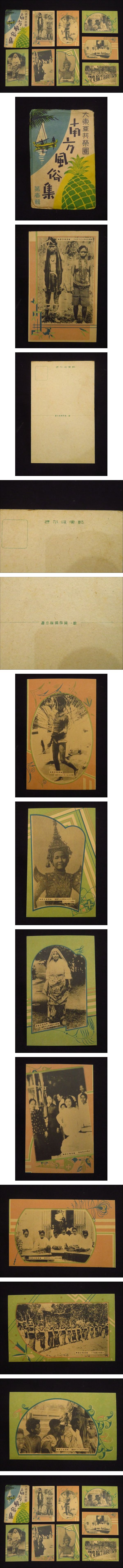 戦前 絵葉書【大東亜共栄圏 南方風俗集 第壱輯◆タトウ付 8枚】南洋 土人 馬来婦人 検)古写真古地図中国朝鮮台湾鳥瞰図亜東印画輯燐票 收藏