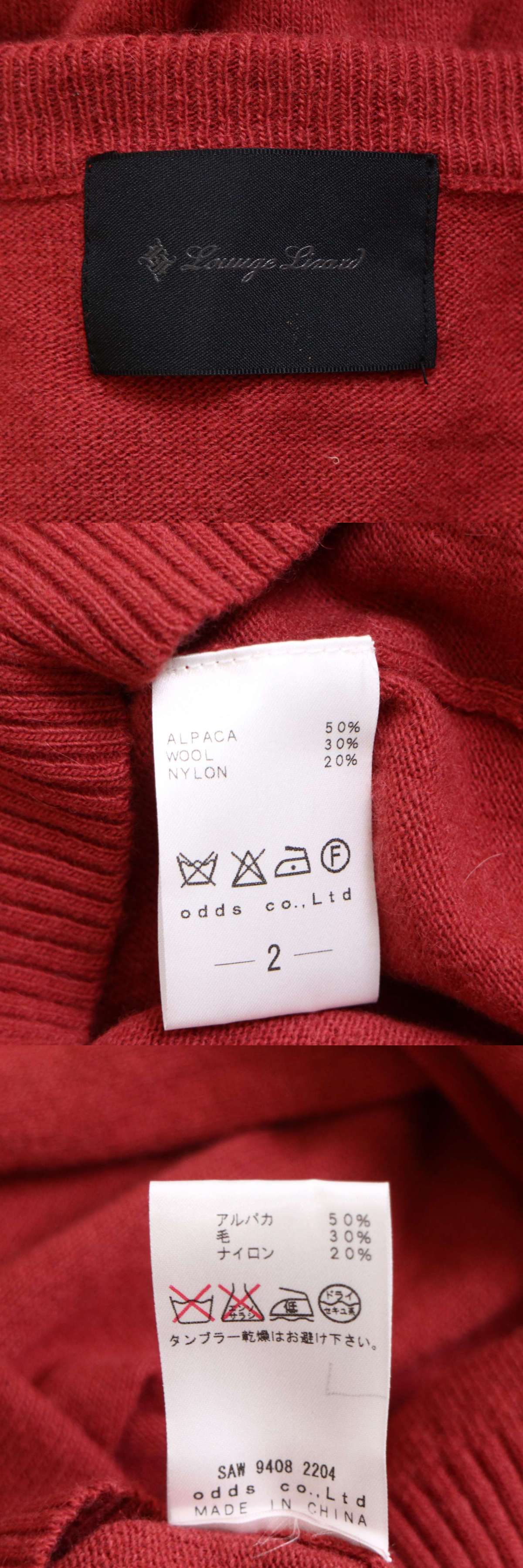 LOUNGE LIZARD ラウンジリザード 秋冬 Vネック★ アルパカ ニット セーター Sz.2 メンズ 收藏