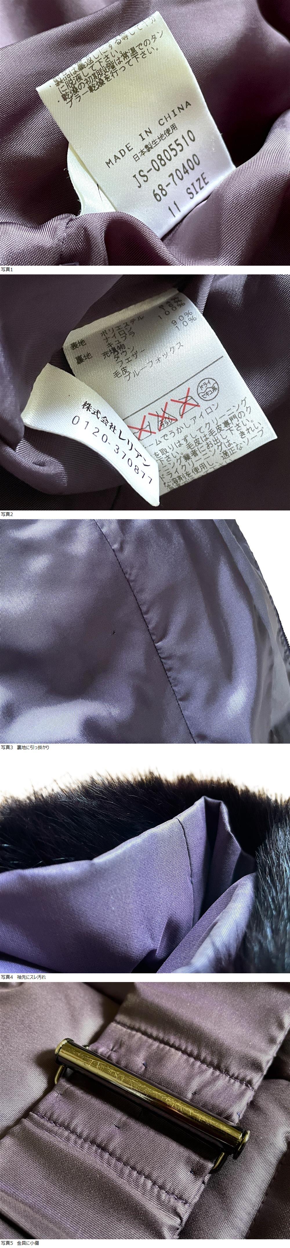 美品 豪華 Leilian レリアン ダウンコート フォックスファー ミンクファー 紫 パープル レディース 11号 ウエストベルト ダウン90% 極暖 收藏