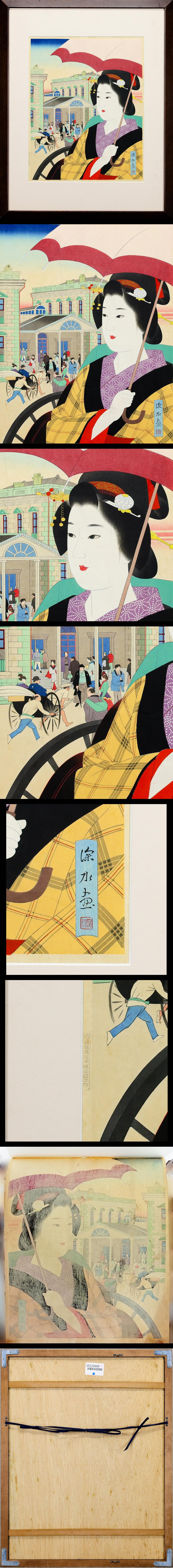 【真作】【WISH】伊東深水「七十年前の新橋駅」木版画 約8号 昭和17年作 渡邊木版 ◆貴重作 〇美人画巨匠 日本芸術院会員 #25122600 收藏