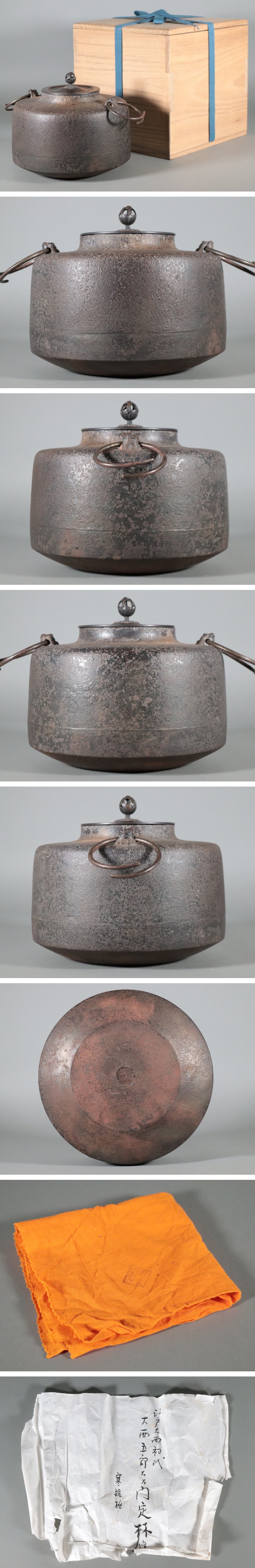 江戸大西家 大西五郎左衛門 定林 / 繰口 肩衝釜 干網地紋 鐶付 獅子 / 御釜師 十三代 宮崎寒稚 極箱 / 煎茶道具 茶道具 茶釜 時代物 骨董品 收藏