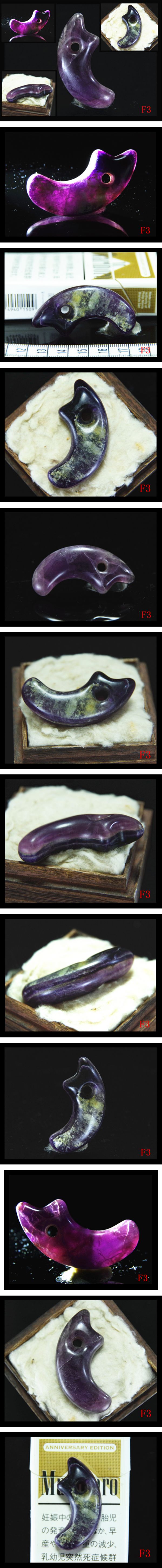 【F3】古墳期★内部美しい縞紋★特有な結晶が見られ★古色上質紫色水晶製★極希少★異状獣首形勾玉★検★縄文弥生出土器土偶法具仏像原石 收藏
