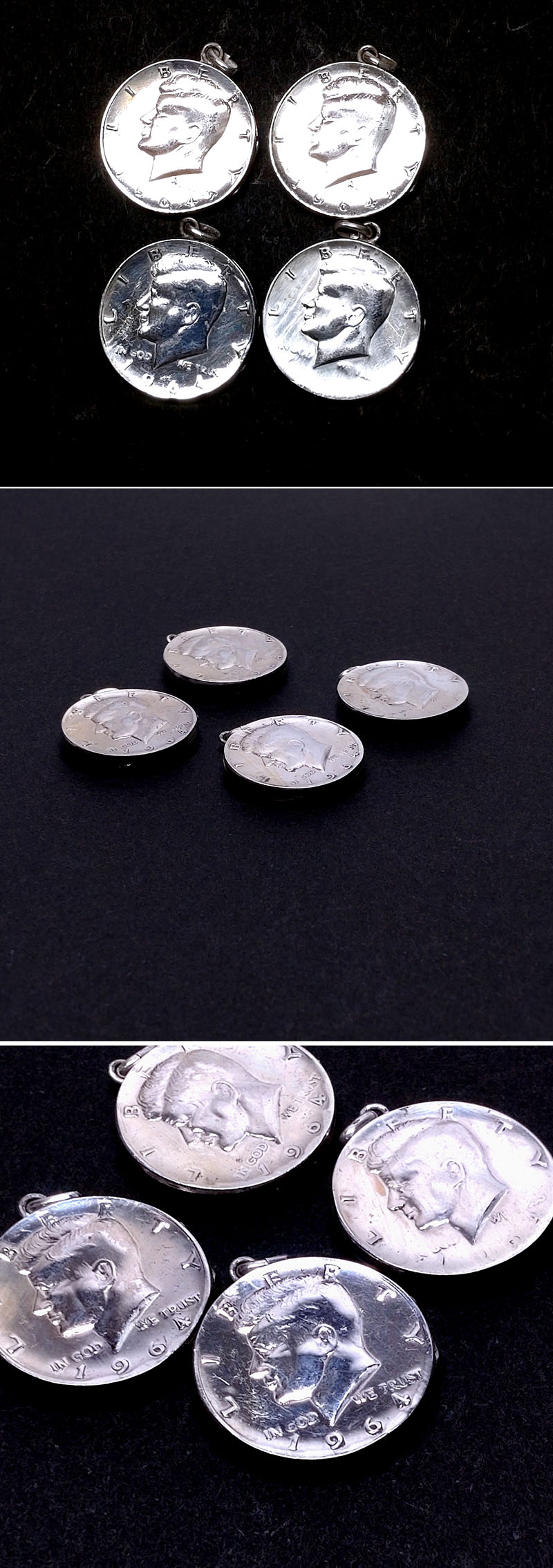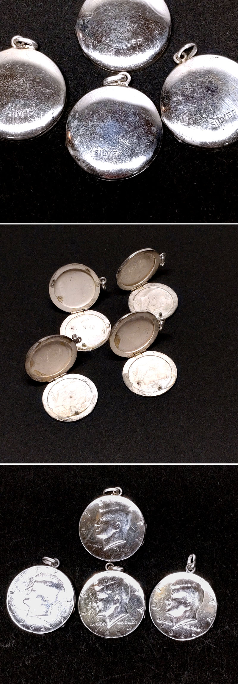 【侍】ヴィンテージ 1960~70s ケネディ1964 コイン SILVER シルバー ロケットペンダント 4点組 20#23 收藏