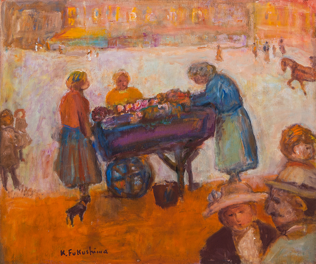 【1on1】真作 福島金一郎 『巴里の花売』 油彩 20号 額装 ■ 二科会理事 サロン・ドートンヌ会員 師:小出楢重・鍋井克之・ボナール 收藏
