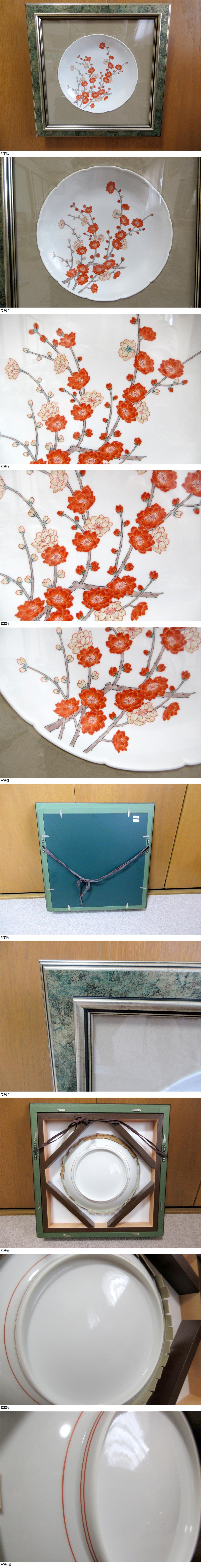| 十四代 酒井田柿右衛門 濁手 枝垂梅文 輪花皿 額装 |